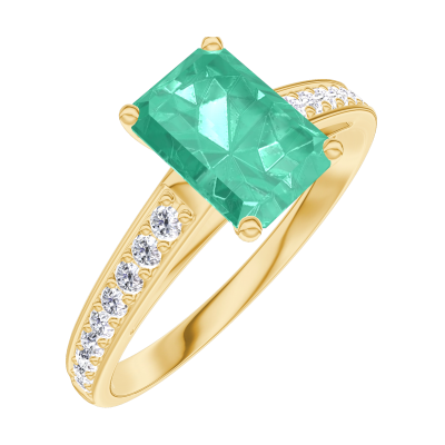 « L'ATELIER » NR 166806Pierścionek Żółte złoto 375 - Szmaragd Prostokąt 0.7 karat - Oprawa Diament