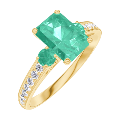 « L'ATELIER » NR 166886Pierścionek Żółte złoto 375 - Szmaragd Prostokąt 0.7 karat - Kamienie boczne Szmaragd - Oprawa Diament