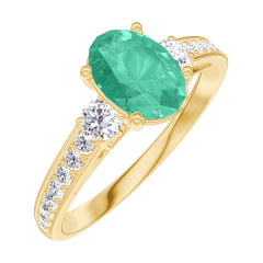 Pierścionek Żółte złoto 750 - Szmaragd Owal 0.7 karat - Kamienie boczne Diament - Oprawa Diament