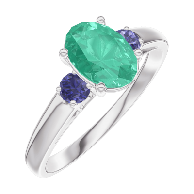 « L'ATELIER » NR 166964Pierścionek Białe złoto 375 - Szmaragd Owal 0.7 karat - Kamienie boczne Niebieski szafir