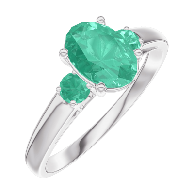 « L'ATELIER » NR 166984Pierścionek Białe złoto 375 - Szmaragd Owal 0.7 karat - Kamienie boczne Szmaragd