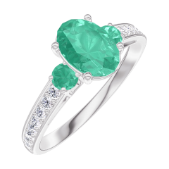 Pierścionek Białe złoto 750 - Szmaragd Owal 0.7 karat - Kamienie boczne Szmaragd - Oprawa Diament