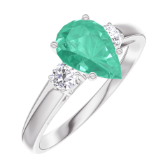 Pierścionek Białe złoto 375 - Szmaragd Gruszka 0.7 karat - Kamienie boczne Diament