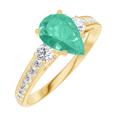 Pierścionek Żółte złoto 750 - Szmaragd Gruszka 0.7 karat - Kamienie boczne Diament - Oprawa Diament
