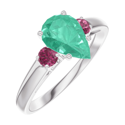 « L'ATELIER » NR 167043Pierścionek Białe złoto 750 - Szmaragd Gruszka 0.7 karat - Kamienie boczne Rubin