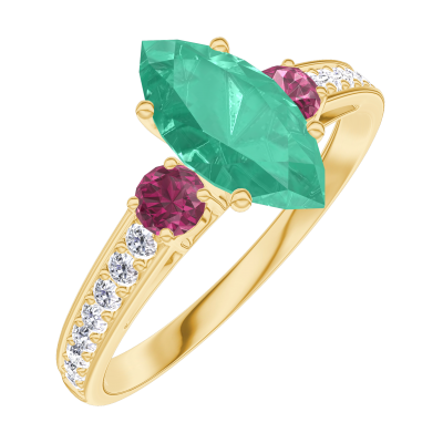 « L'ATELIER » NR 167145Pierścionek Żółte złoto 750 - Szmaragd Markiza 0.7 karat - Kamienie boczne Rubin - Oprawa Diament