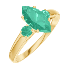 Pierścionek Żółte złoto 750 - Szmaragd Markiza 0.7 karat - Kamienie boczne Szmaragd