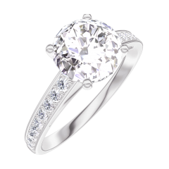 Pierścionek Białe złoto 750 - Diament okrągły 1 karat - Oprawa Diament