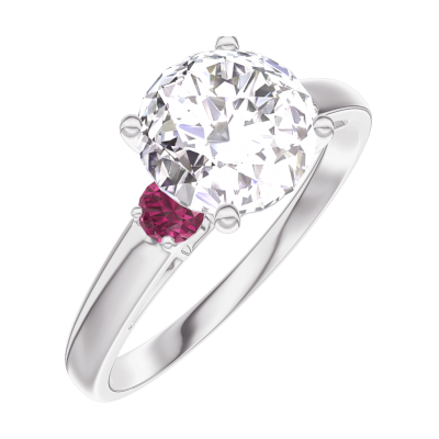 « L'ATELIER » Nº167244Pierścionek Białe złoto 375 - Diament okrągły 1 karat - Kamienie boczne Rubin 4.9