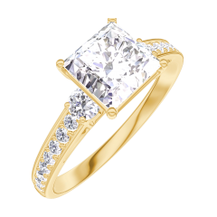 « L'ATELIER » NR 167326Pierścionek Żółte złoto 375 - Diament „Księżniczka” 1 karat - Kamienie boczne Diament - Oprawa Diament