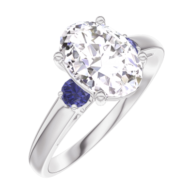 « L'ATELIER » Nº167564Pierścionek Białe złoto 375 - Diament Owal 1 karat - Kamienie boczne Niebieski szafir 4.8