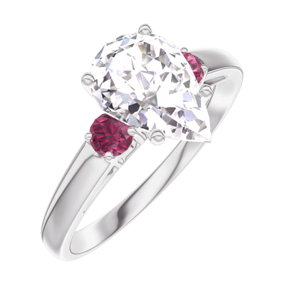 « L'ATELIER » NR 167643Pierścionek Białe złoto 750 - Diament Gruszka 1 karat - Kamienie boczne Rubin