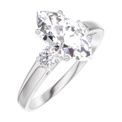 Pierścionek Białe złoto 750 - Diament Markiza 1 karat - Kamienie boczne Diament