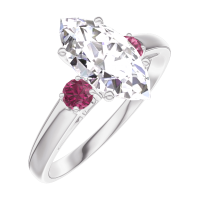 « L'ATELIER » Nº167744Pierścionek Białe złoto 375 - Diament Markiza 1 karat - Kamienie boczne Rubin