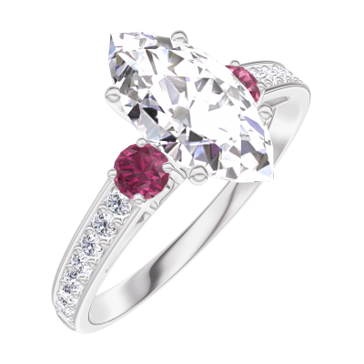 « L'ATELIER » NR 167747Pierścionek Białe złoto 750 - Diament Markiza 1 karat - Kamienie boczne Rubin - Oprawa Diament