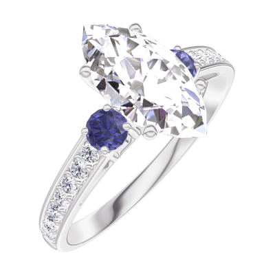 « L'ATELIER » NR 167768Pierścionek Białe złoto 375 - Diament Markiza 1 karat - Kamienie boczne Niebieski szafir - Oprawa Diament