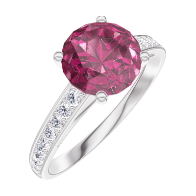 « L'ATELIER » NR 167808Pierścionek Białe złoto 375 - Rubin okrągły 1 karat - Oprawa Diament 4.9