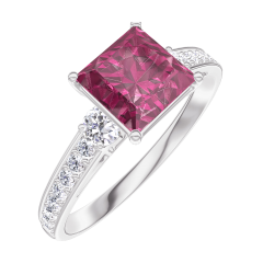 Pierścionek Białe złoto 750 - Rubin „Księżniczka” 1 karat - Kamienie boczne Diament - Oprawa Diament