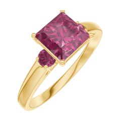 Pierścionek Żółte złoto 375 - Rubin „Księżniczka” 1 karat - Kamienie boczne Rubin