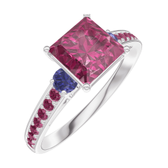Pierścionek Białe złoto 750 - Rubin „Księżniczka” 1 karat - Kamienie boczne Niebieski szafir - Oprawa Rubin