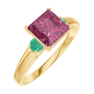 « L'ATELIER » NR 167981Pierścionek Żółte złoto 750 - Rubin „Księżniczka” 1 karat - Kamienie boczne Szmaragd
