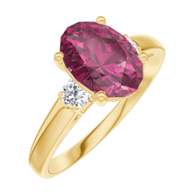 « L'ATELIER » NR 168122Pierścionek Żółte złoto 375 - Rubin Owal 1 karat - Kamienie boczne Diament 4.8