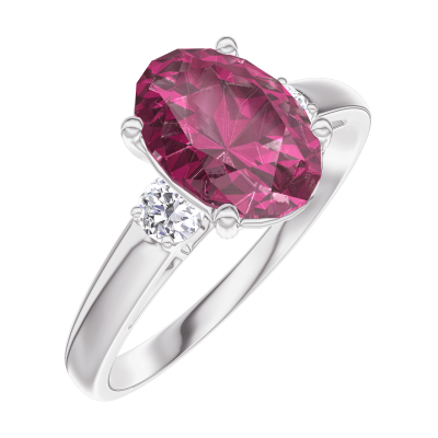 « L'ATELIER » NR 168124Pierścionek Białe złoto 375 - Rubin Owal 1 karat - Kamienie boczne Diament 4.8