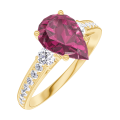 Pierścionek Żółte złoto 750 - Rubin Gruszka 1 karat - Kamienie boczne Diament - Oprawa Diament