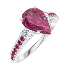 Pierścionek Białe złoto 750 - Rubin Gruszka 1 karat - Kamienie boczne Diament - Oprawa Rubin