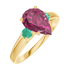 Pierścionek Żółte złoto 750 - Rubin Gruszka 1 karat - Kamienie boczne Szmaragd