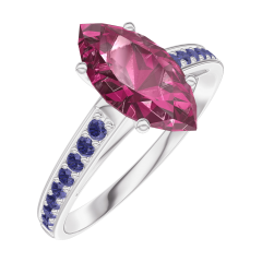 Pierścionek Białe złoto 750 - Rubin Markiza 1 karat - Oprawa Niebieski szafir
