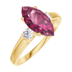 Pierścionek Żółte złoto 375 - Rubin Markiza 1 karat - Kamienie boczne Diament