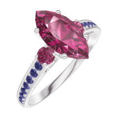 Pierścionek Białe złoto 375 - Rubin Markiza 1 karat - Kamienie boczne Rubin - Oprawa Niebieski szafir