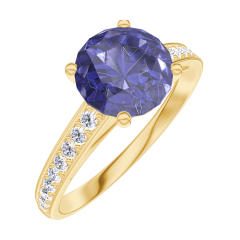 Pierścionek Żółte złoto 750 - Niebieski szafir okrągły 1 karat - Oprawa Diament