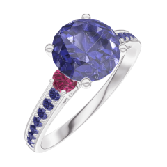 « L'ATELIER » NR 168455Pierścionek Białe złoto 750 - Niebieski szafir okrągły 1 karat - Kamienie boczne Rubin - Oprawa Niebieski szafir 4.7