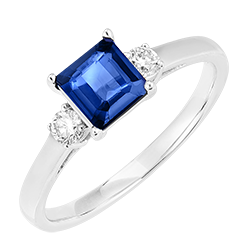 Pierścionek Białe złoto 375 - Niebieski szafir „Księżniczka” 1 karat - Kamienie boczne Diament