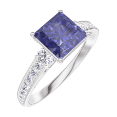 « L'ATELIER » NR 168528Pierścionek Białe złoto 375 - Niebieski szafir „Księżniczka” 1 karat - Kamienie boczne Diament - Oprawa Diament