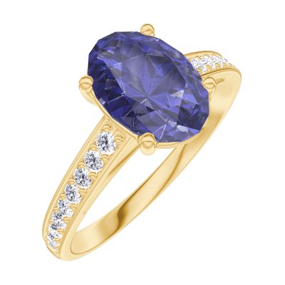 « L'ATELIER » NR 168706Pierścionek Żółte złoto 375 - Niebieski szafir Owal 1 karat - Oprawa Diament 4.8