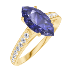 Pierścionek Żółte złoto 750 - Niebieski szafir Markiza 1 karat - Oprawa Diament