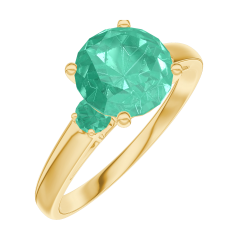 Pierścionek Żółte złoto 750 - Szmaragd okrągły 1 karat - Kamienie boczne Szmaragd