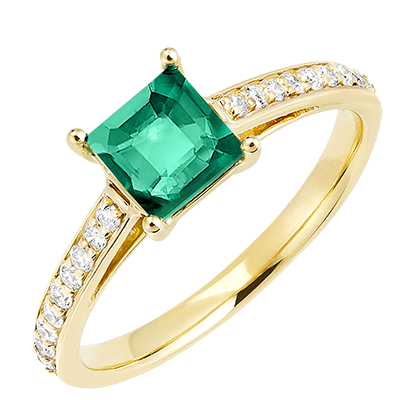 « L'ATELIER » NR 169105Pierścionek Żółte złoto 750 - Szmaragd „Księżniczka” 1 karat - Oprawa Diament