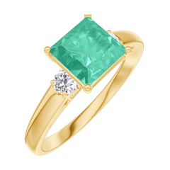 « L'ATELIER » NR 169122Pierścionek Żółte złoto 375 - Szmaragd „Księżniczka” 1 karat - Kamienie boczne Diament