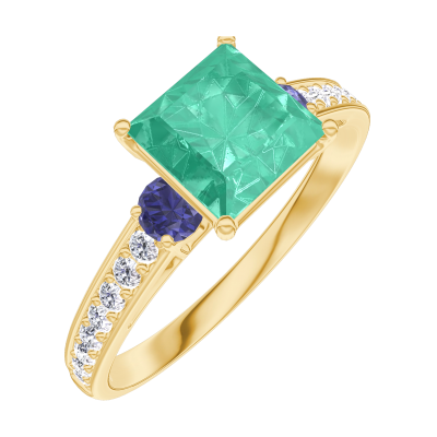 « L'ATELIER » NR 169165Pierścionek Żółte złoto 750 - Szmaragd „Księżniczka” 1 karat - Kamienie boczne Niebieski szafir - Oprawa Diament