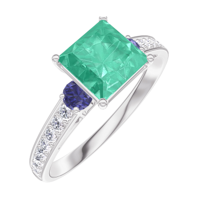 « L'ATELIER » NR 169167Pierścionek Białe złoto 750 - Szmaragd „Księżniczka” 1 karat - Kamienie boczne Niebieski szafir - Oprawa Diament