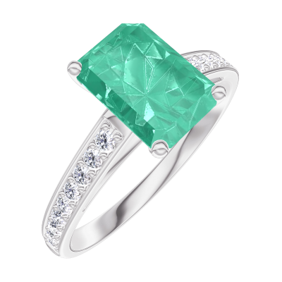 « L'ATELIER » NR 169208Pierścionek Białe złoto 375 - Szmaragd Prostokąt 1 karat - Oprawa Diament 4.6
