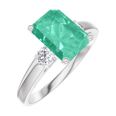 « L'ATELIER » NR 169223Pierścionek Białe złoto 750 - Szmaragd Prostokąt 1 karat - Kamienie boczne Diament 4.6