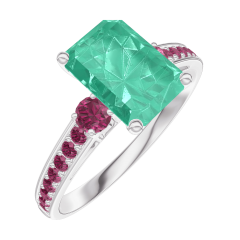 Pierścionek Białe złoto 750 - Szmaragd Prostokąt 1 karat - Kamienie boczne Rubin - Oprawa Rubin
