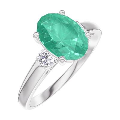 « L'ATELIER » NR 169323Pierścionek Białe złoto 750 - Szmaragd Owal 1 karat - Kamienie boczne Diament 4.8