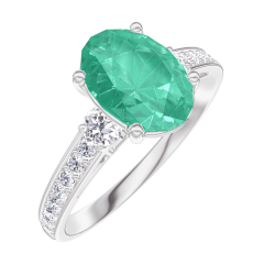 Pierścionek Białe złoto 750 - Szmaragd Owal 1 karat - Kamienie boczne Diament - Oprawa Diament