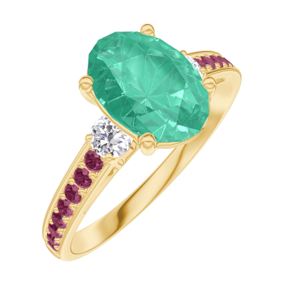 « L'ATELIER » NR 169330Pierścionek Żółte złoto 375 - Szmaragd Owal 1 karat - Kamienie boczne Diament - Oprawa Rubin 4.8